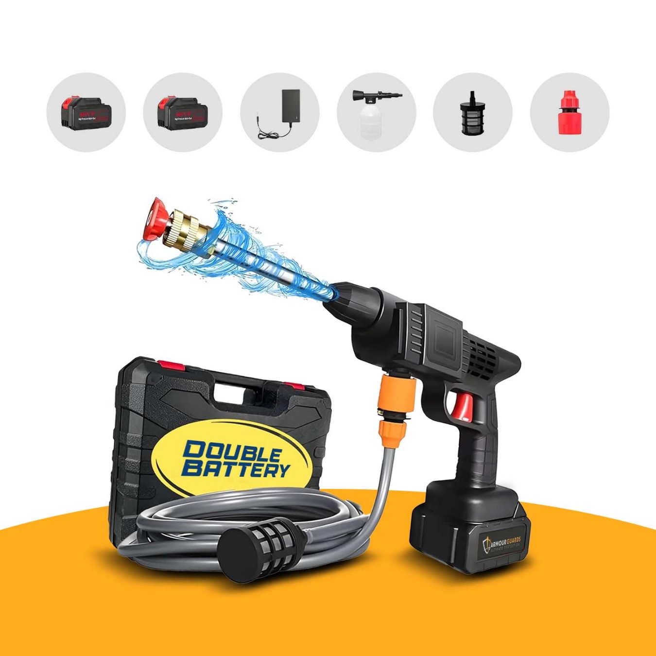 Cordless High-Pressure Power Washer Water Gun for Cars, Bikes, Cleaning – Rechargeable Electric Washer with Adjustable Nozzles & 5M Hose Pipe